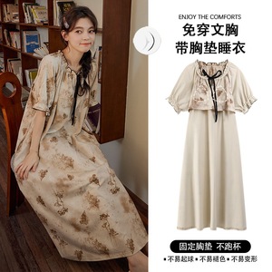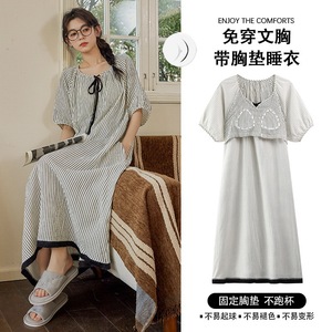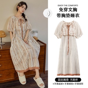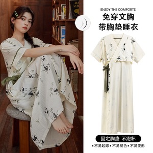 女性用胸パッド付き着物ナイトガウン、夏用、薄手、甘い、半袖、ゆったり、人気、ロング、ウェアラブルドレス、プリントなし