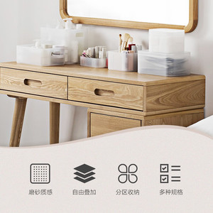 茶花(CHAHUA)塑料口罩收纳盒透明带盖箱小号格子桌边化妆储物