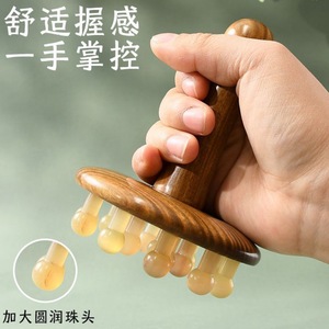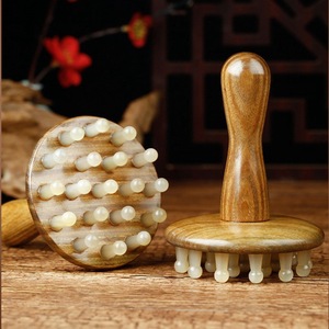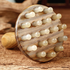 長柄マッサージコーム 緑檀材 頭部経絡ツリー 28本爪 指環型コーム ヘアサロン専用経絡ブラシ 脈ブラシ付き