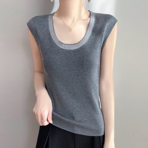 精紡ウールにはU襟のニットベストが入っています。女性の中にはスリムに見えます。