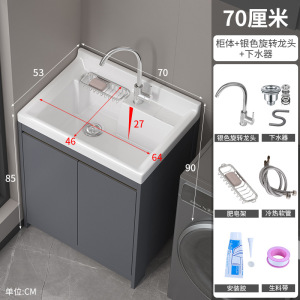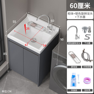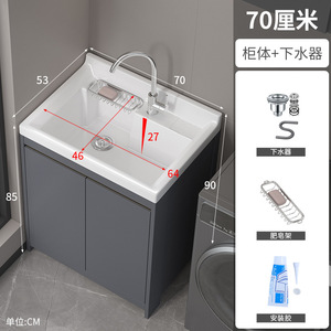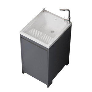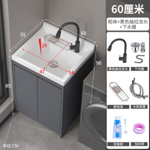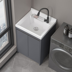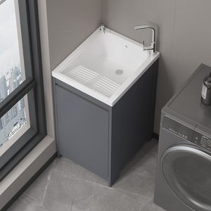 ベランダの洗濯池の宇宙アルミニウムの洗濯棚の小戸型の陶磁器の洗面器は洗濯板を持って着地して一体の台盆を深めます。
