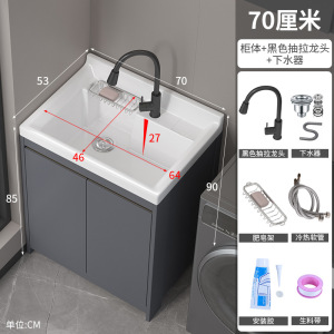 70深洗面器キャビネット+排水+引き出し式蛇口[洗濯板なし]