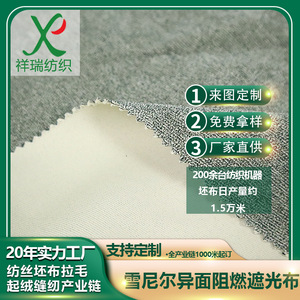 全ポリエステル難燃遮光布黒糸両面/模造麻異面/シェニール異面難燃遮光布カーテン生地