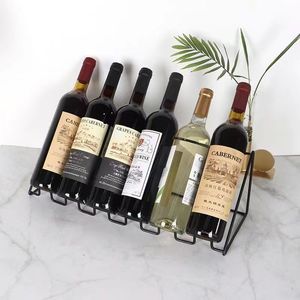 ワインラックのテーブルの上にワインを斜めに置いて展示します。