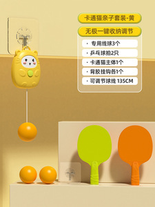 卓球訓練器を掛けて子供の室内の親子が交流して視力の兵球の注意力を是正します。