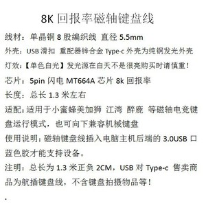 カスタムUSB-C8単結晶銅【白色光】8k電気競争磁気軸機械キーボード充電線プラグ発光