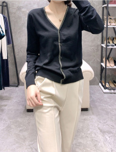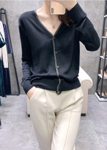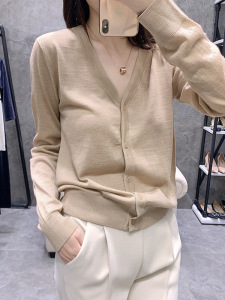 ニットのカーディガンの薄いタイプの女性vネックの春と秋はゆったりしていて、痩せています。