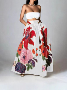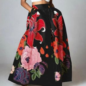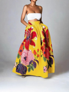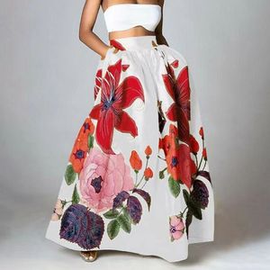 女性のボヘミアンの花のゆったりしたスカートの高腰パーティーの休日のビーチの長いワンピース