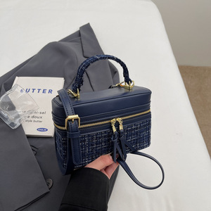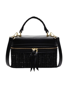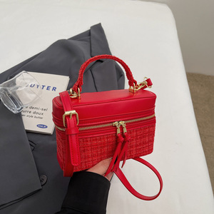 バッグの女性バッグの編み物バッグのつなぎ合わせは色の手提げの箱の包みにぶつかって2025新型の韓国版の洋気のシングル肩の斜めのバッグの潮にまたがります。