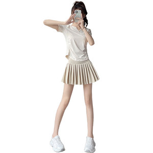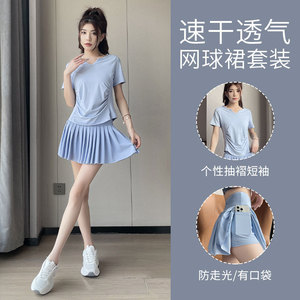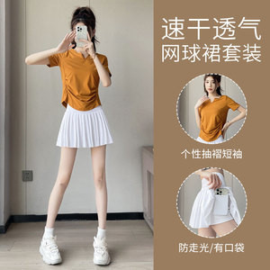バドミントンのスポーツのスーツの女性2025新型の夏のテニスのスカートのランニングの朝のランニングの服のヨガの半袖のフィットネスの服