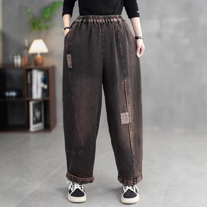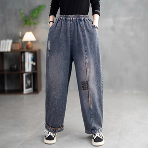 レトロな水洗いと白い布のジーパンの女性2025新型のゆったりしていて、やせています。