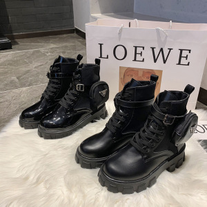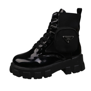 外国貿易の新型の大きいサイズの厚い底の太さとポケットの短い筒のマーティンの靴の女性の欧米の前のひもは純色のファッションの靴を持っています。