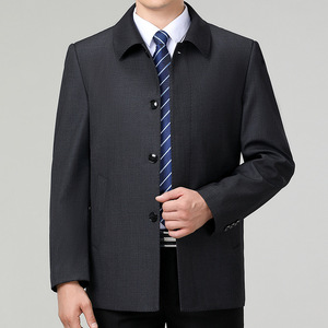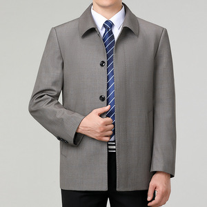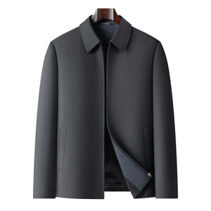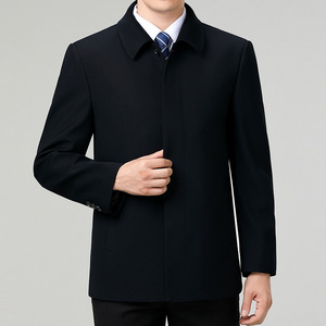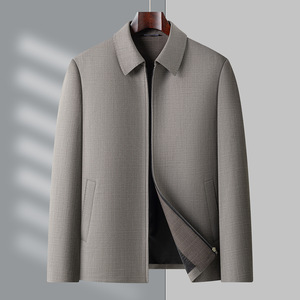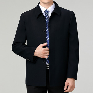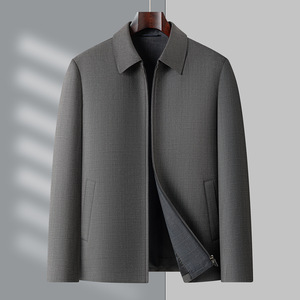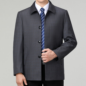新型ウールジャケット男性中年襟秋装薄着高齢者父親装毛織物ボタン付カジュアルコート