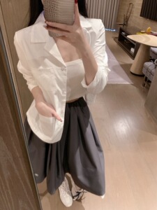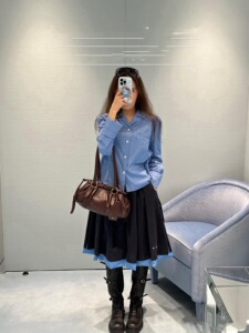 2025早春新作MM学院風セット衝突色刺繍アルファベットシャツ衝突色蓬蓬半身スカート