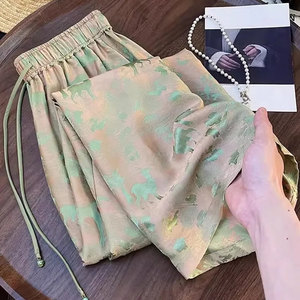 レトロなデザイン感のあるおしゃれなワイドパンツの女性夏の新型は腰を緩めて縄を引く国風の涼しいズボンに合わせて日焼け止めのズボンを作ります。