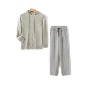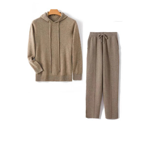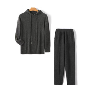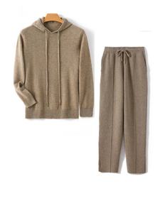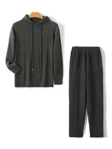 秋冬新作カーディガン男性フード付きセーター純色ニットウールパーカーセット