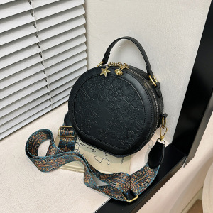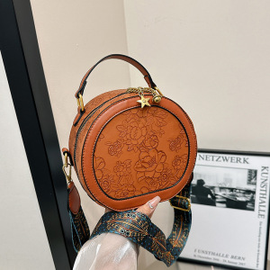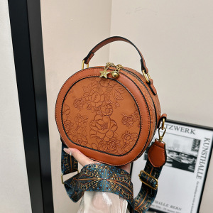 質感の小さい包みの女性の2025新型の秋冬のファッションの小さい丸い包みのファッションの簡単な花の手提げの肩の斜めのショルダーバッグ