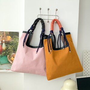 レトロ大容量純色ショルダーバッグ女性2025シンプルな春の新しい質感カジュアルな両面の色合わせバッグ