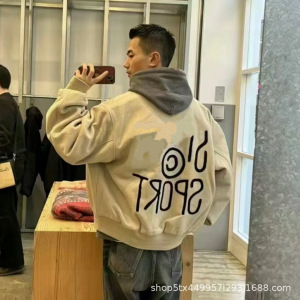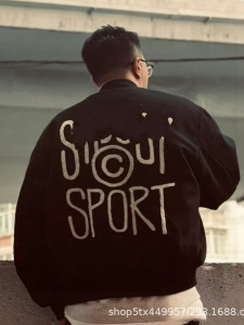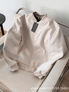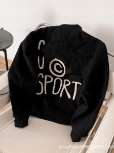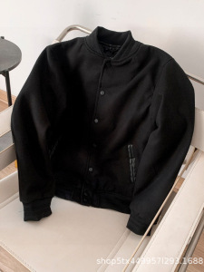 S塗装美式レトロ野球服コート男女カップルカシミヤ刺繍植毛アルファベット両面ウールジャケットINS