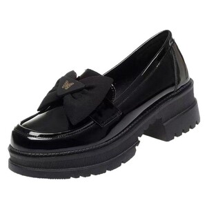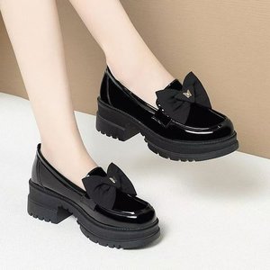 2025新型春秋復古小革靴厚い底蝶結び楽福靴女性英倫風太ヒール靴女性靴