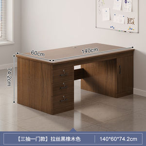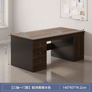 【ダブルテーブル、引き出し3段、扉1枚】ヨーロピアンブラックオーク色 140CM