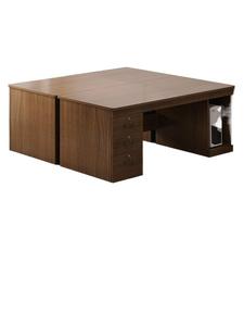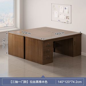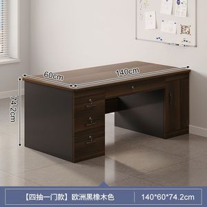 【ダブルテーブル、引き出し4枚、扉1枚】ヨーロピアンブラックオーク色 140CM