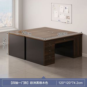 【ダブルテーブル、引き出し4枚、扉1枚】ヨーロピアンブラックオーク色 120CM