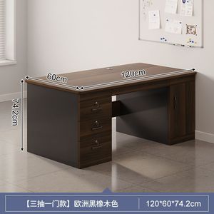 【ダブルテーブル、引き出し3段、扉1枚】ヨーロピアンブラックオーク色 120CM