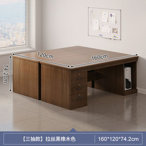 【ダブルテーブル、引き出し4枚、扉1枚】ヨーロピアンブラックオーク色 160CM
