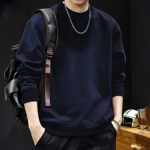 ネイビーブルーのラウンドネックスウェットシャツとベルベットスタイル - 無地 [GL]