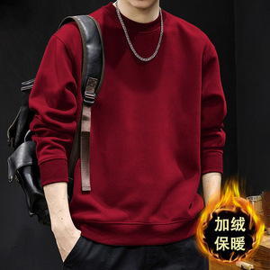 バーガンディ ラウンドネック スウェットシャツ プラス ベルベット スタイル - 無地 [GL]