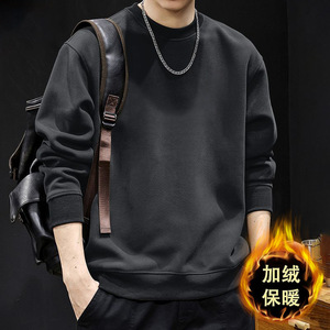 ダークグレー ラウンドネック スウェットシャツ プラス ベルベット - 無地 [GL]