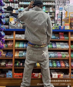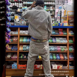 クロスボーダーコルセット悪魔島デニムセットハイストリート西部デニムジャケットコートゆるいジーンズ潮牌