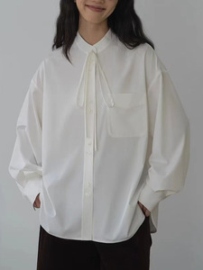 HAVERICE饭馆 普罗旺斯 抗皱舒适吸睛复古文艺可拆卸系带立领衬衫