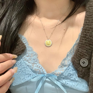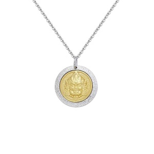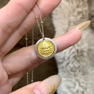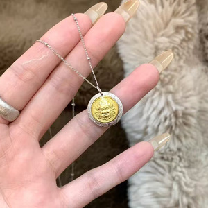 S925純銀黄財神円牌ペンダントレトロハンマー紋描金ネックレス国風招財入宝鎖骨鎖卸売り
