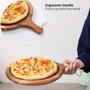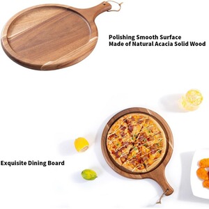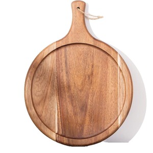 アカシアの円形の野菜のまな板の台所の肉食の皿はハンドルの熟食のチーズの皿のレストランのピザの板の果物の皿を持ちます。