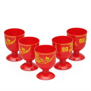 ウェディングプラスチック乾杯結婚赤いトランペット白杯結婚披露宴新郎新婦乾杯お酒杯