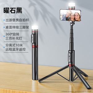 新型ハンドヘルド自撮り棒、手ぶれ補正、伸縮式、Bluetooth、ポータブル、三脚、スマホライブ配信用補助光スタンド