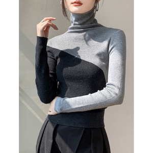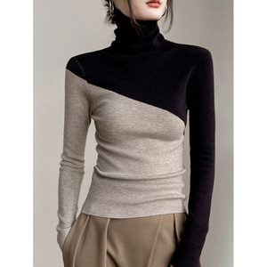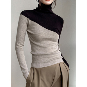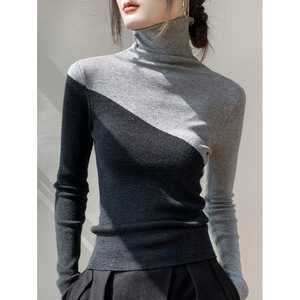 女性用タートルネックセーター 2025 冬の新しいスリムフィットセーターは外でも内でも着用でき、カラーブロックのボトムシャツトッププルオーバー
