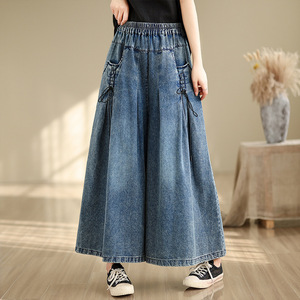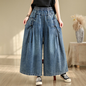 大きいサイズのジーパンの女性の2025年の新型の春のタイプのワイドレギンスのズボンは緩くてゆったりしています。
