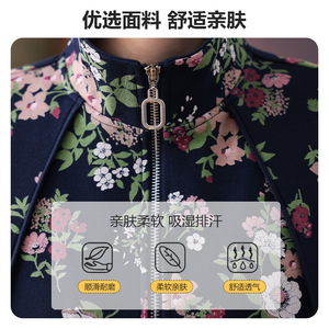 洋気ママ春レトロ花柄ジャケット新作2点セット中高年女子春秋立襟セット高級感