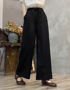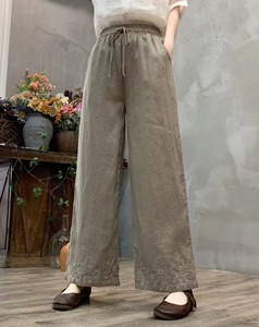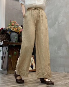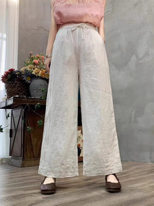 2025年春夏新款纯亚麻女士高腰系带纯色阔腿裤宽松舒适文艺休闲裤