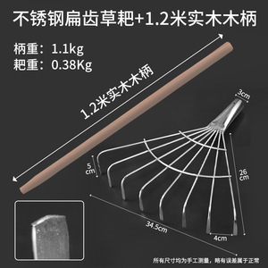 8歯[ステンレス製]平歯草熊手+1.2無垢材ハンドル