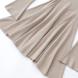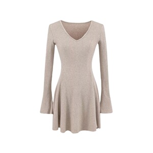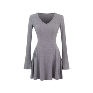 アメリカのレトロなvネックのラッパの袖のニットのワンピースの女性は身を修めて腰のしわを収めます。
