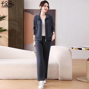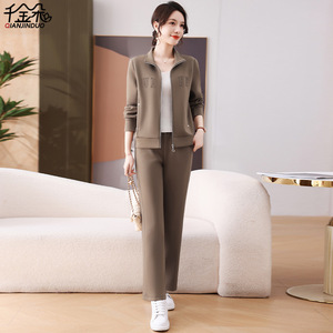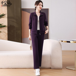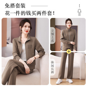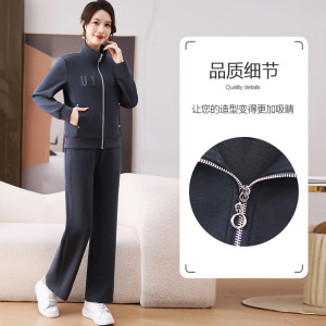 スポーツスーツ女性中年ママ2025新型洋気中高年女装春秋コート高級感2点セット