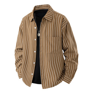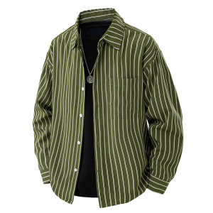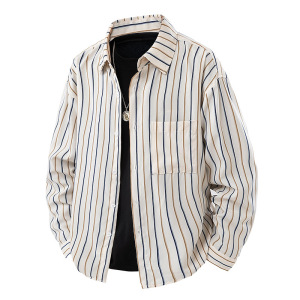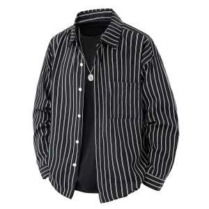 新商品のゆったりとした襟の日本のストライプのシャツの男性の春秋のファッションのブランドのゆったりとしたカジュアルな長袖のシャツ