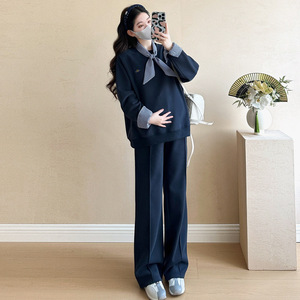 実写スポット ~ 妊婦服春服セットファッションタイプの妊婦上着の中のロングタイプの洋風がゆったりしています。