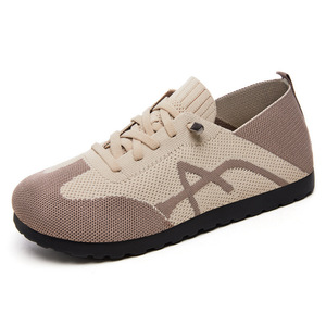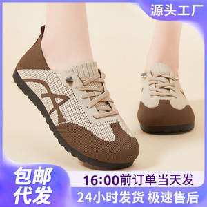 靴の女性の靴新しいレトロな道徳トレーニングシューズ通気性スリッポンカジュアルシューズポリウレタンレースアップ多用途スポーツシューズ
