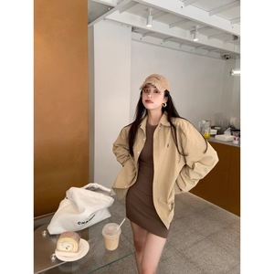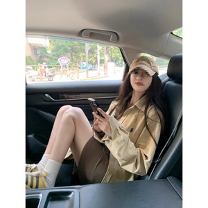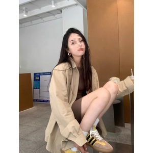高級感のあるアメリカのレトロなカーキ色のシャツの女性春秋2025の新型の小柄な韓国系のゆったりしたシャツのコート