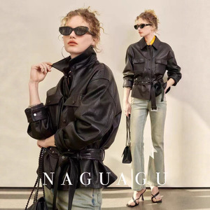 全ネットの低価格の春秋ファッションのカジュアルコートの女性の短い革の服の小さい人はゆったりしていて、痩せています。